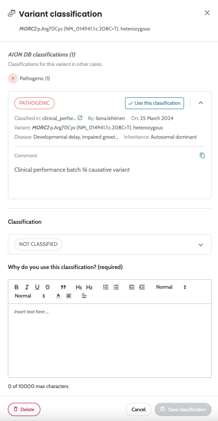 submitted_by [optional]: the name of the scientist that classified the variant. If they are a current user of AION, the email address linked to AION would facilitate traceability of the classified variants.